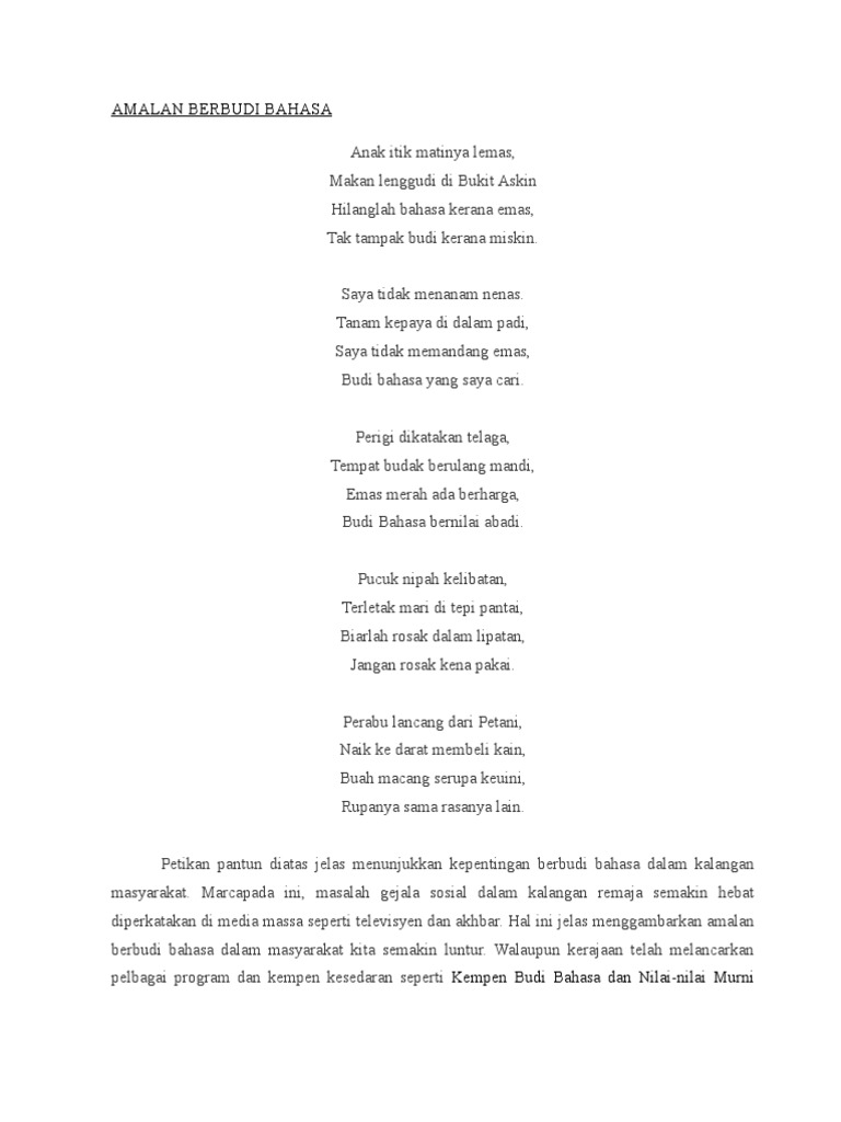 Kepentingan Amalan Berbudi Bahasa Dalam Kalangan Masyarakat Doc Document