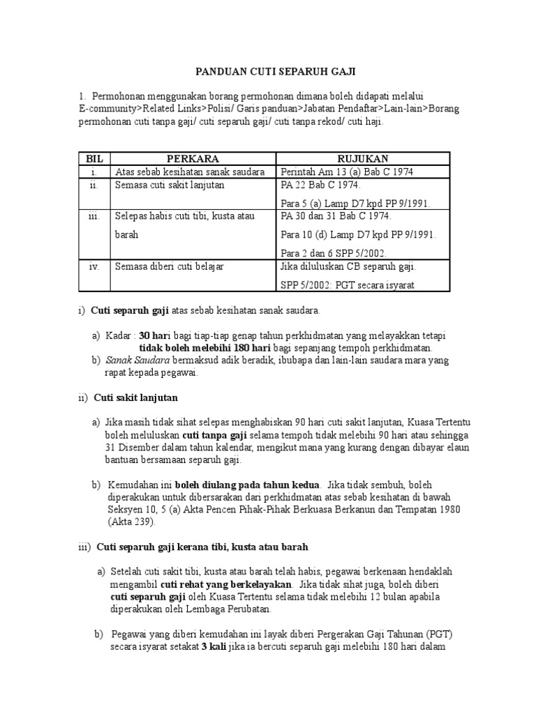 Panduan Cuti Separuh Gaji Bil Perkara Panduan Cuti Separuh Gaji Bil Perkara Pdf Pdf4pro