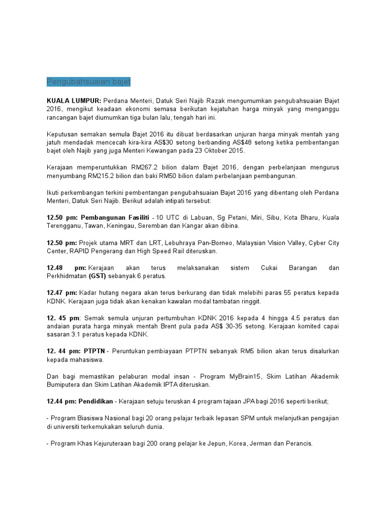 Intipati Intipati Penting Pengubahsuaian Bajet 2016 Klxpress