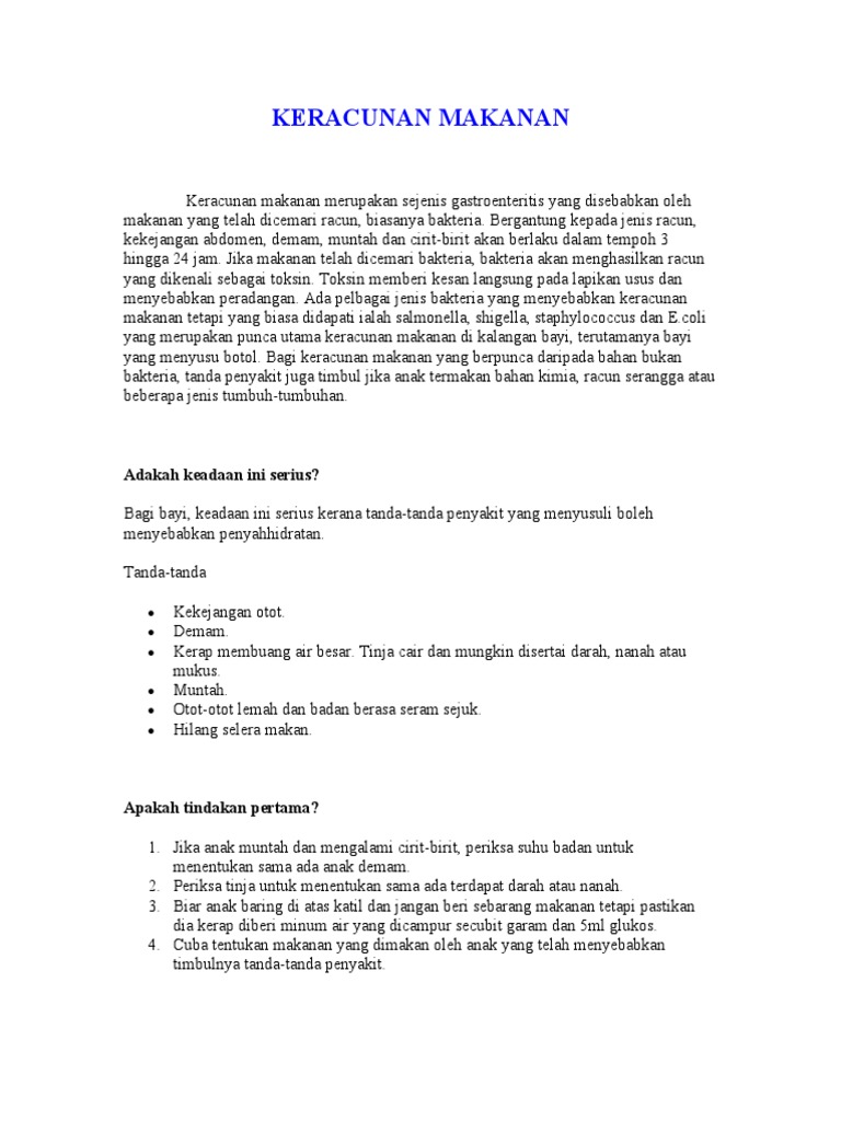 Punca Punca Keracunan Makanan Portal Myhealth