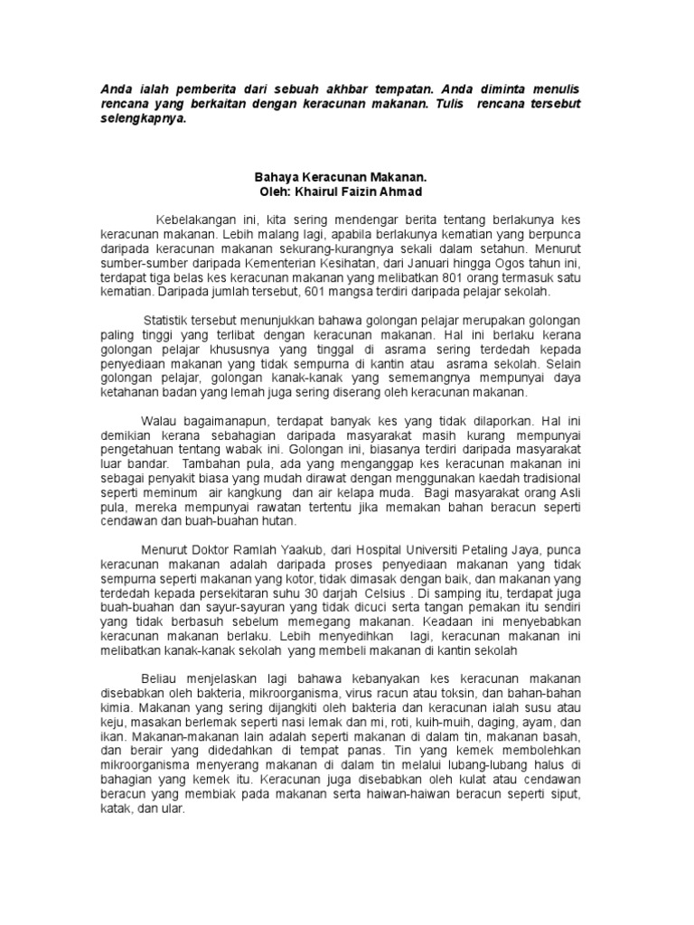 Karangan Punca Keracunan Makanan