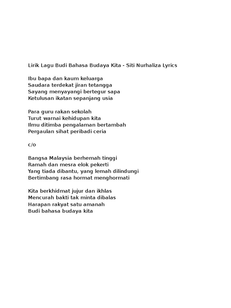Lirik Lagu Budi Bahasa Budaya Kit1 Pdf Document