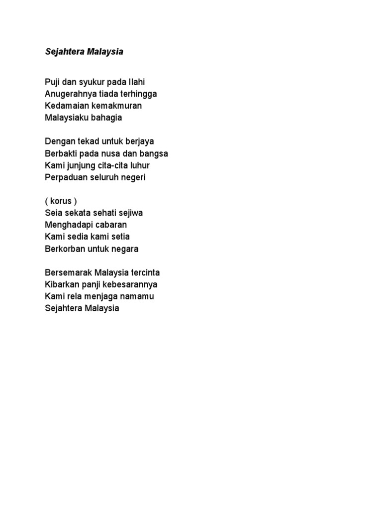 Lirik Lagu Sejahtera Malaysia