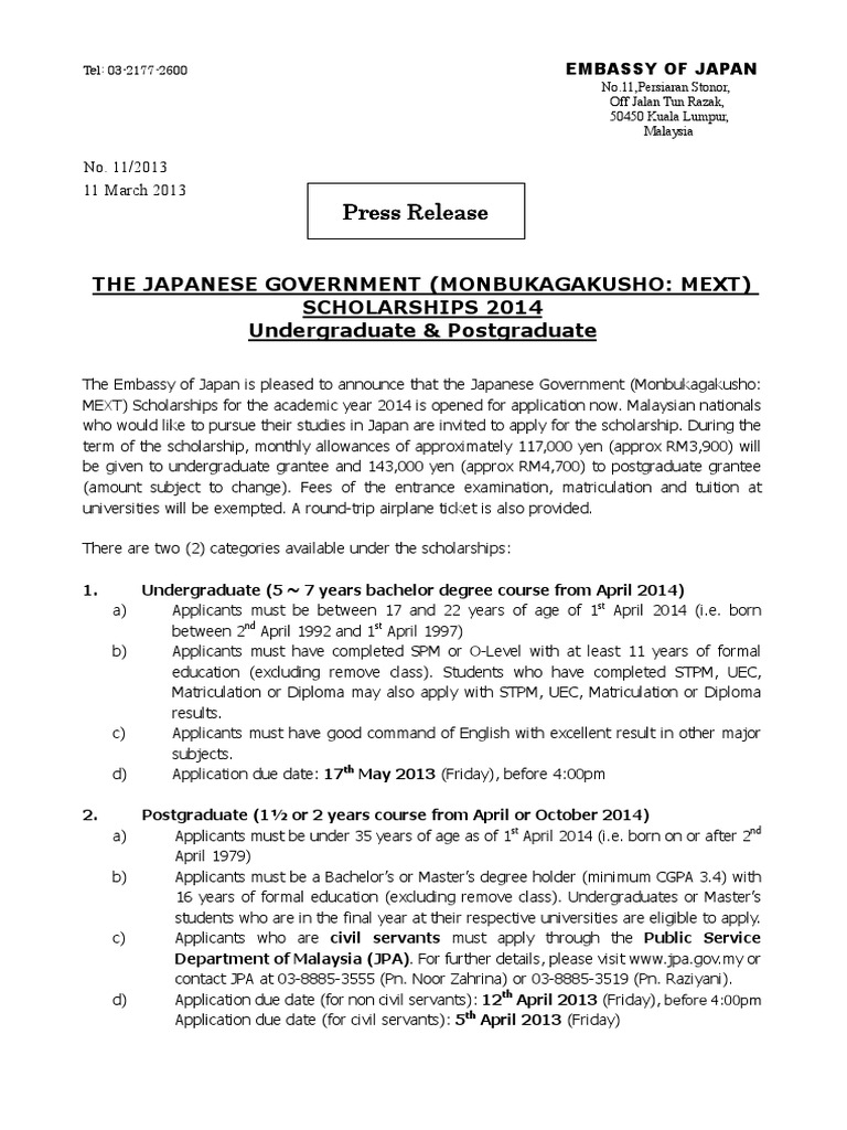 Japanese Government Scholarship 2021 Embassy Of Japan In Malaysia 在マレーシア日本国大使館 Facebook