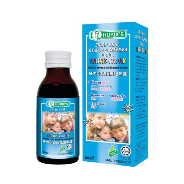 Hurix S Sirap Ubat Demam Selsema Untuk Kanak Kanak 60ml 好力伤风退热露 Hurix S Fever Cold Syrup For Children Improved Shopee Malaysia